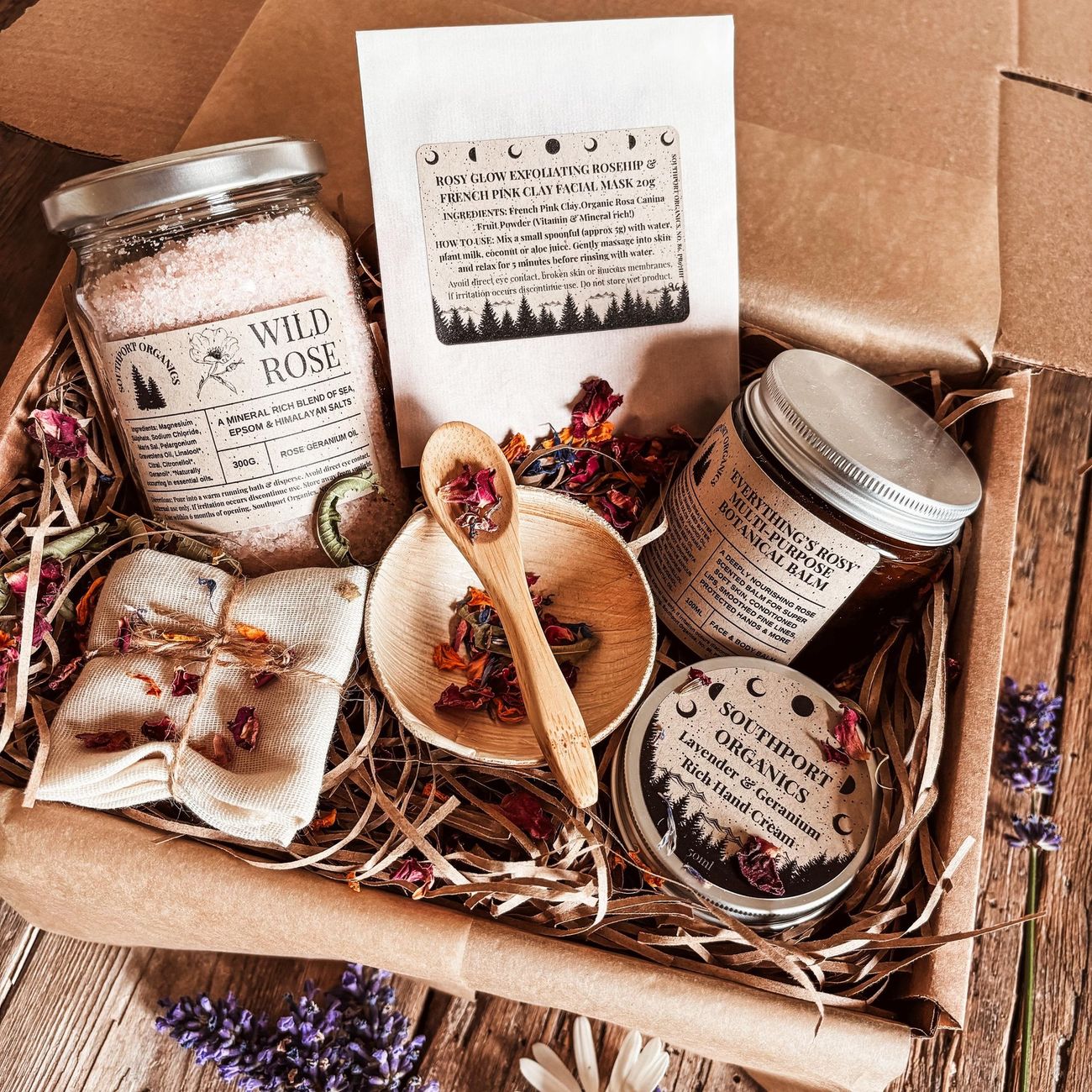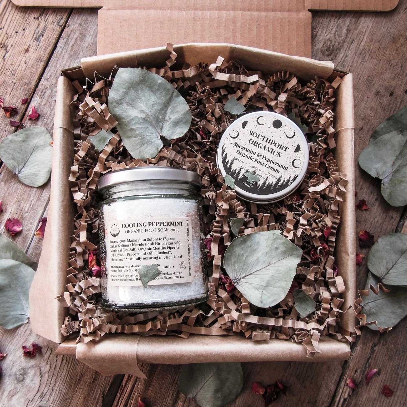 Gift Sets Bath Salts Trio Gift Box £30 Luxury Rose Organic Spa Hamper £47 Peppermint & Spearmint Foot Spa Gift Box £22