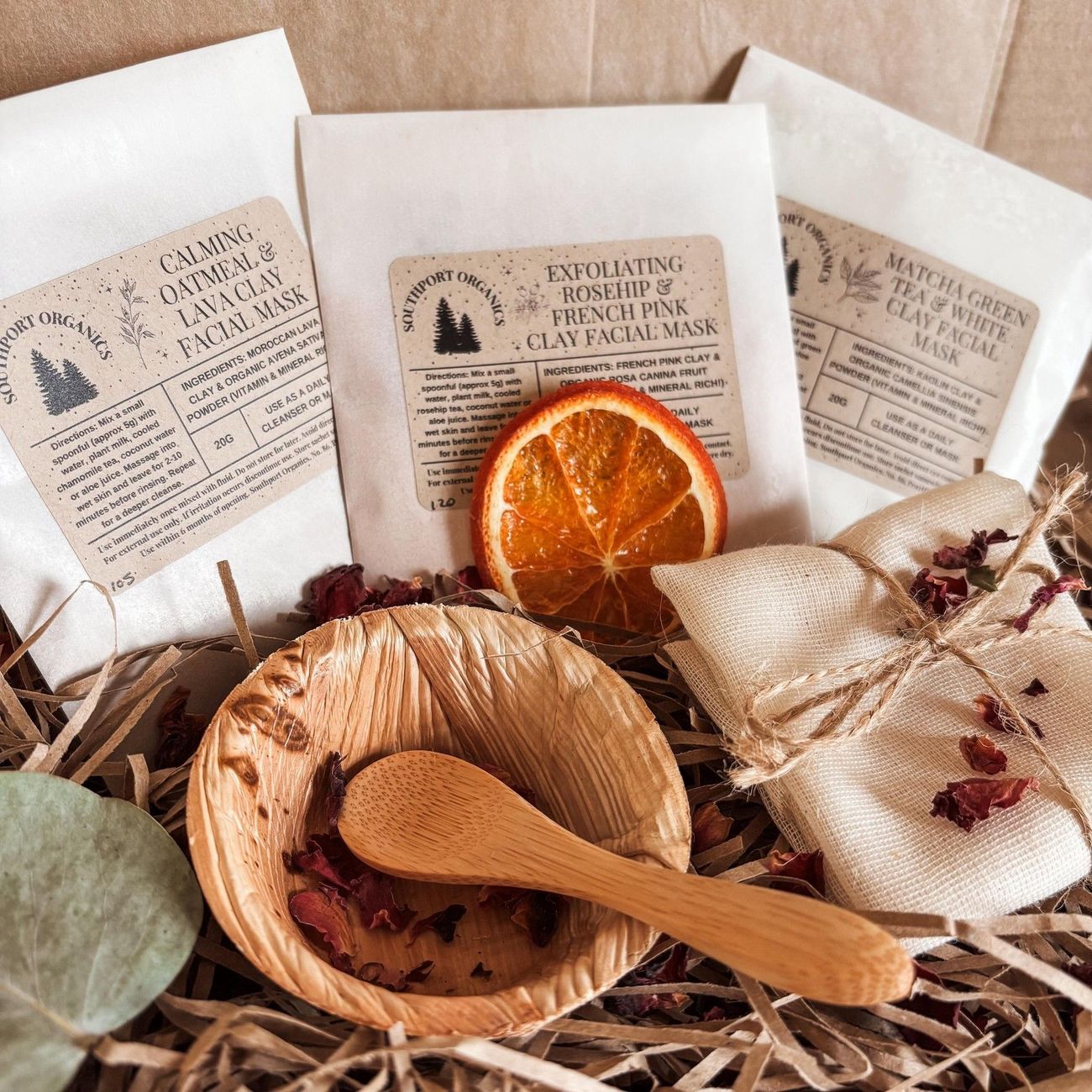 Bursting with vitamins and minerals, Southport Organics diy powder masks are fully customisable for an interactive spa-like experience. Mix with cooling and de-puffing cold water, or use with warm water to open pores and ease tension. Other skin safe liquids may be used instead of water, such as Aloe Vera Juice, Oat Milk, Coconut Water or cooled herbal teas such as Chamomile or Green Tea.